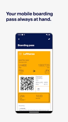 • Online check-in: Use the Lufthansa app to check in for all flights operated by Lufthansa Group Network Airlines. You will receive your digital flight ticket on your smartphone and can conveniently access your mobile boarding pass from the app.